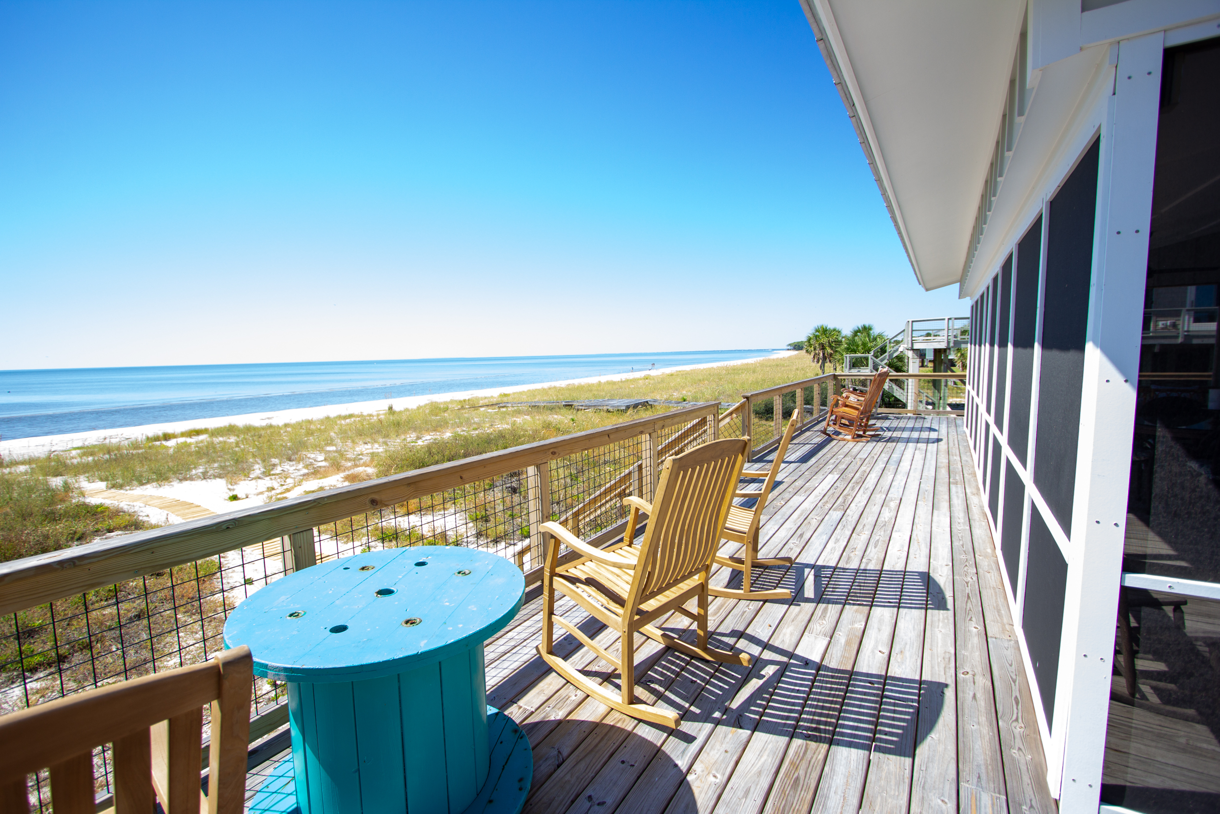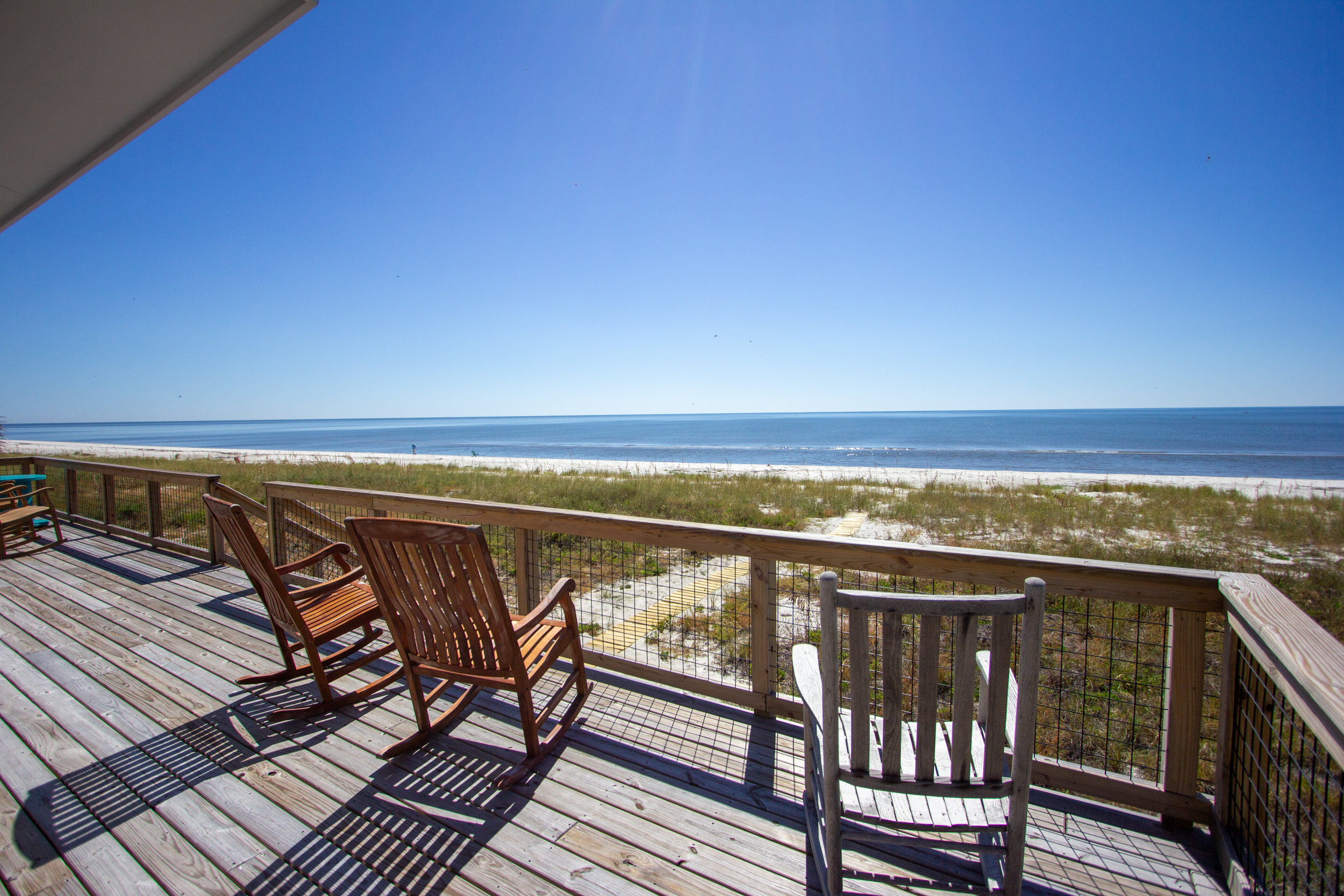 Recently built for family and relaxation, this brand new private home features amazing views of the Gulf of Mexico. The decks offer a beautiful, serene view. Escape the crowds you find at other beaches . Relax and enjoy 4 seasons outdoor dining or take in the sound of the ocean just steps away.